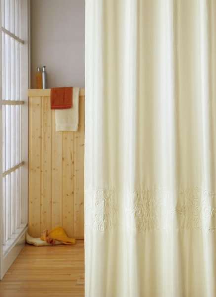 Cortina de baño textil bordada de alta calidad. Tacto agradable y larga duracion.
